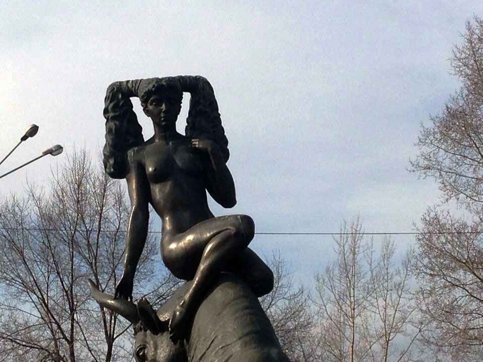 Classical Greek epos about how the god of sky Zeus is abducting Phoenician princess Europa is very popular all over the world already thousands years. This epos inspires the million people to create the works of art like pictures, poems, books, monuments and fountains. One of the beautiful fountains you can find in the town Krasnoyarsk. The fountain it is big bronze sculptural composition in the center of the three-tier fountain.