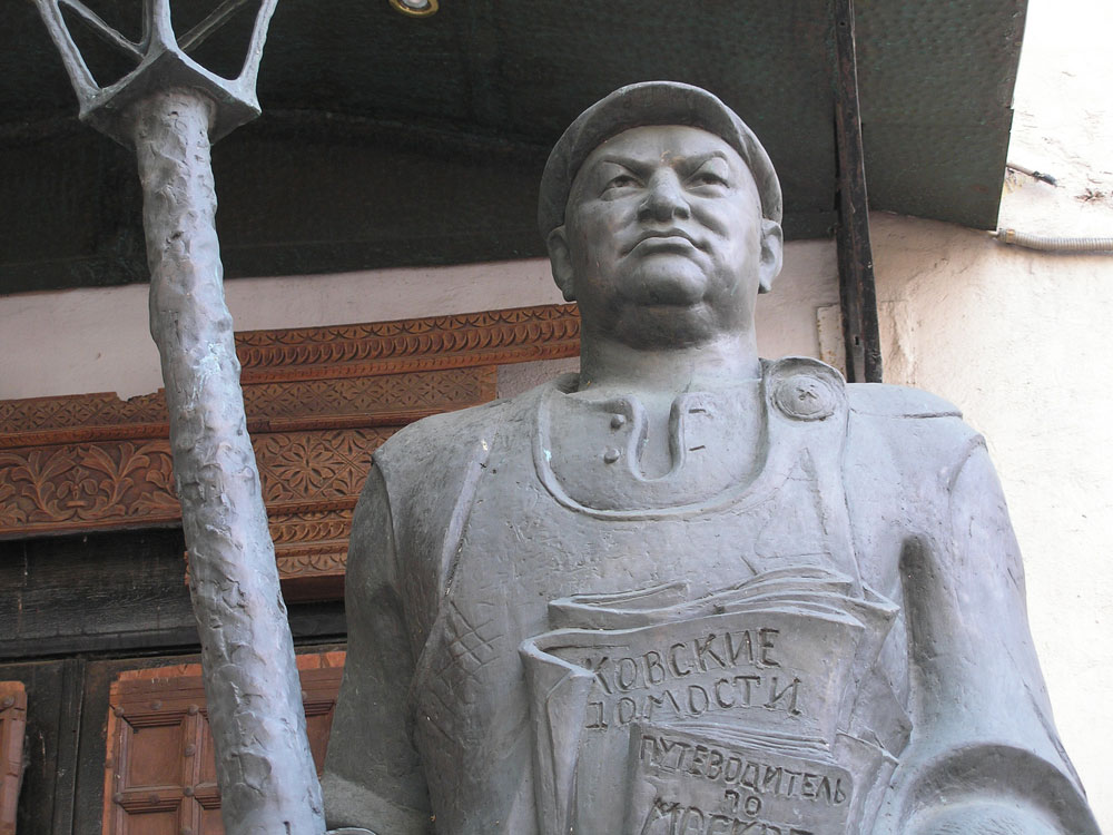 Go to metro station Chehovskaya and exit to Strastnoy bulvar street. Go forward to Petrovka street. There next to the monument to Vladimir Vysotsky turn right and go forward to 25-th on the Petrovka street where is the Moscow museum of modern Art. Here in the yard of the museum you will find the monument – Luzhkov-street cleaner.