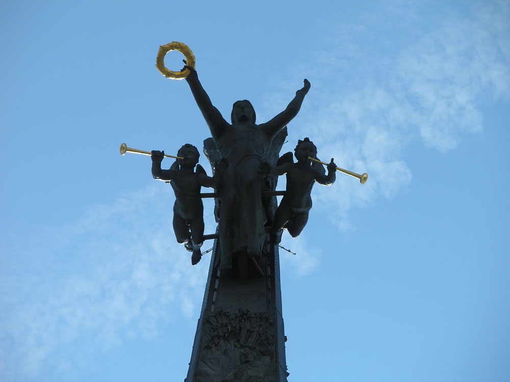 A Victory monument it is stele 142 meters in height. There is a sculpture of the victory goddess Nike on the top of the stele. In the bottom part of the stele there is a sculpture of the Saint George who is killing the dragon.