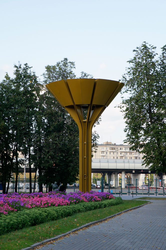 The monument to the cutest and kind symbol of the all symbols of Olympics games it is the monument to Olympic bear. It is a bronze sculpture of the bear in human size with what you can hug and take a photo. The monument was placed next to the bowl of the Olympic flame which had burned during the XXII Summer Olympic games in Moscow in 1980. This flame was lighted by Olympic champion Sergey Belov. The bowl was mounted on the small white granite pedestal. There is a memorial inscription on the pedestal: “Moscow 1980”. In the middle of the memorial inscription there is an emblem of the Moscow Olympic Games in 1980.
