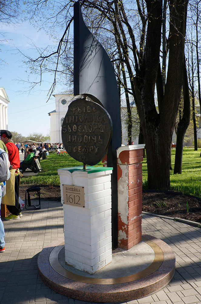 The monument to the kopeck was established in 2013 on the territory of the Holy Transfiguration Monastery in Yaroslavl on the initiative of the chamber of Commerce and Industry of Yaroslavl. The monument was established in Yaroslavl because here in 1612 was temporary mint while Moscow was occupied by Polish interventionists.