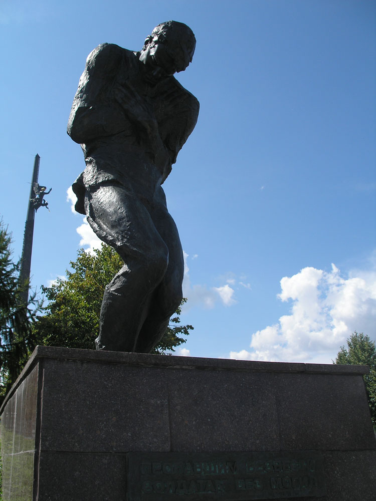A monument was established in honor of all missing soldiers during the Second World War. The monument shows us a wounded soldier. He is holding his hands at the chest and not able to go further.
