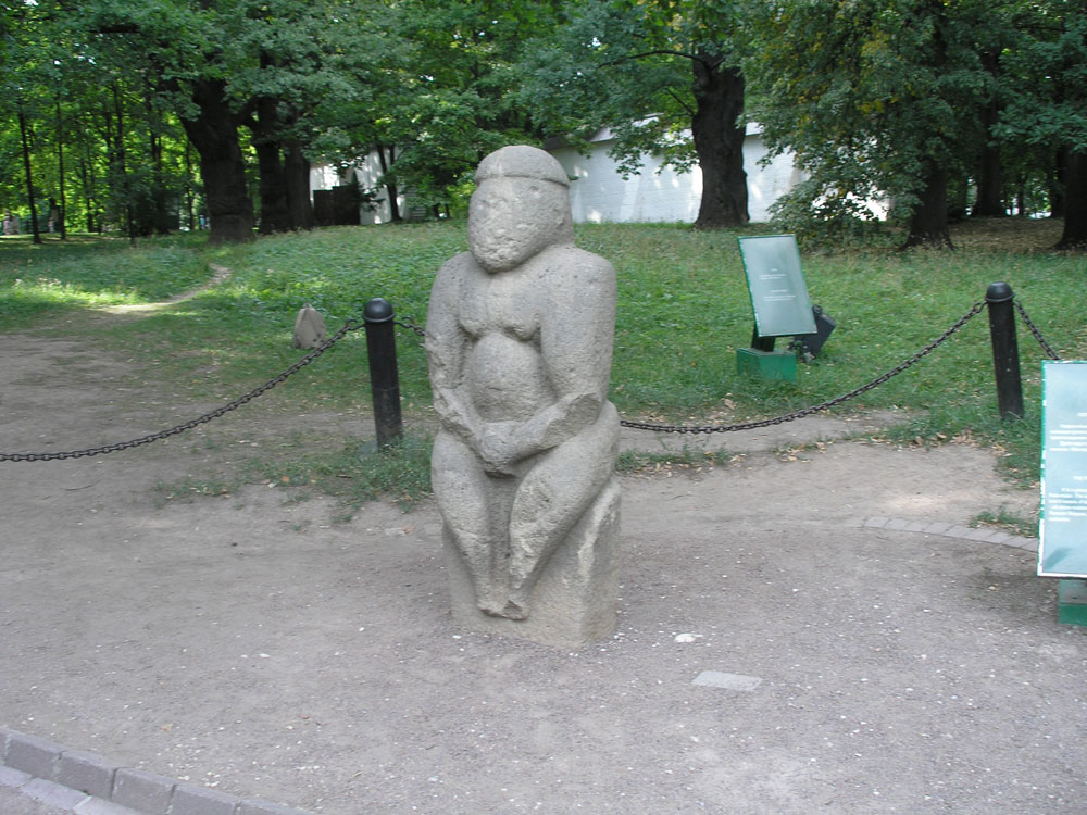 Go to metro station Kolomenskoye and exit to the Andropov avenue. Go to the south on this avenue till the building № 39. Here is the central entry to the Kolomenskoye. After that go to the sovereign yard and go into the yard. Choose right path and pass the pillar chapel after that pass the Garden gate and house of Peter the Great. There turn left and next to the oaks you will find the Polovets stone idol.