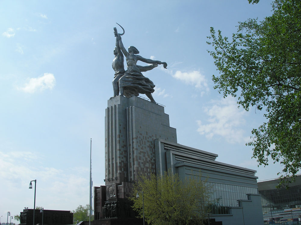 The monument “Worker and Kolkhoz Woman” is twenty-five meters I height and is made from steel. The monument is placed on the big pedestal 33 meters in height what is a museum. The sculptures of the man and woman which are standing side by side and holding the hammer and the sickle are the symbol the development and the authority of the working class of the Soviet Union.