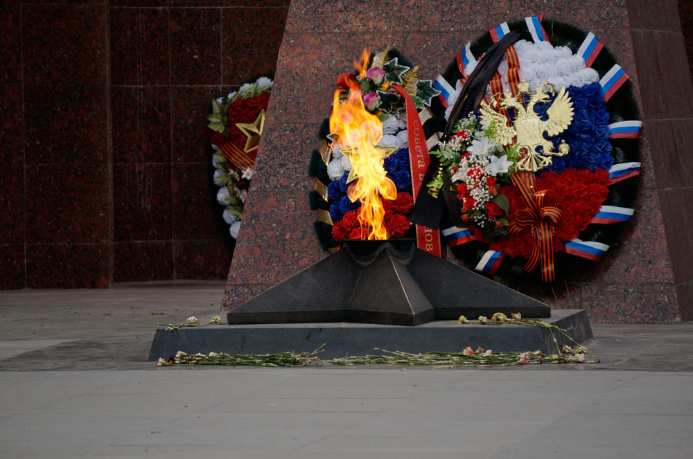 The memorial was established on the square at the Moscow Street in honor of the heroism of Russian soldiers and simple people who fought against the Nazi for the motherland.
