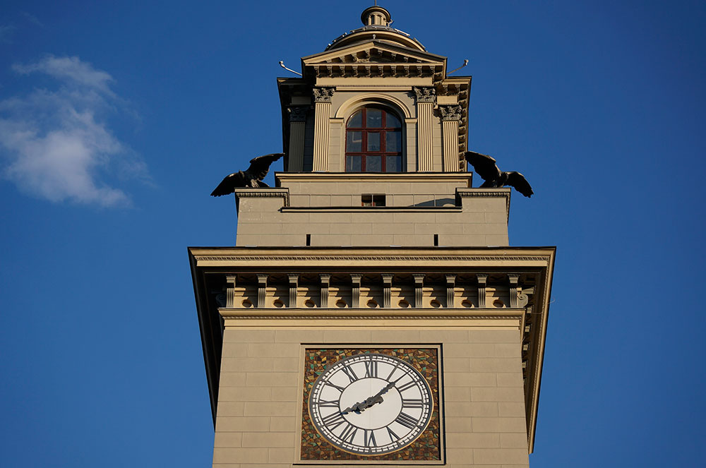 Самыми главными и известными часами Россия являются часы на Спасской башне Кремля. Часы были установлены на башне в середине XIX века, хотя история часов на Спасской башне берет своя начало с XVI века. Часы составляю историческую ценность, так как такие механические куранты уже давно не производят и в Москве осталось всего двое часов с подобным механизмом. Вторые часы находятся на башне Киевского вокзала. Кроме часов на Спасской башне в Кремле вы можете найти еще трое часов: на Большом Кремлевском дворце, Троицкой и Боровицкой башнях. А вот на Казанском вокзале часы интересны тем, что вместо цифр на циферблате расположены двенадцать знаков зодиака.