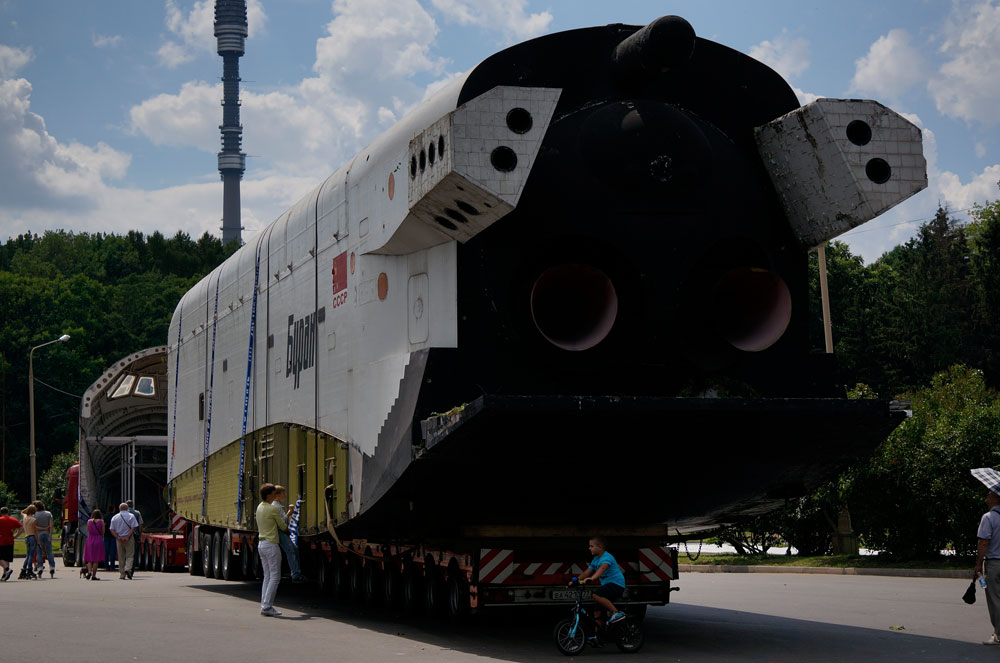 Сегодня 06.07.2014 года была проведена уникальная операция по перемещению не менее уникального космического корабля “Буран” из Парка Горького на ВНДХ. Макет Бурана простоял в парке Горького одиннадцать лет, и вот в субботу 5 июля 2014 года в 23:00 началась уникальная операция по перевозке, которая продлилась семь часов . Буран займет достойное место рядом с макетом знаменитейшей ракеты носителя “Восток-1”, доставившая первого в мире человека на орбиту земли.