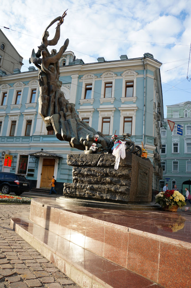 Приезжаете на станцию Китай-город Калужско-Рижской линии и выходите на ул. Варварка, это прям у Славянской площади. На перекрестке Лубянского проеза и Солянский проезд сворачиваете на Солянский проезд. По нему идете до перекрестка с Солянской улицей и сворачиваете на нее и идете до перекрестка с Подколокольным переулком. Здесь у дома ул. Солянка д. 5/2с4 вы увидите памятник ужасной трагедии.