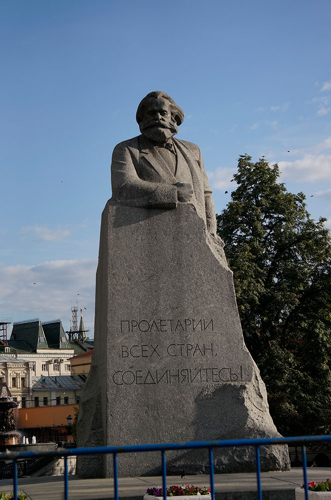 Памятник знаменитому немецкому философу XIX века Карлу Марксу такой же мощный и монументальный как его бессмертная работа “Капитал”. Высеченный из большого куска светло-серого гранита, памятник представляет Карла Маркса выступающим за трибуной. На постаменте нанесена знаменитая фраза из его “Манифеста коммунистической партии”: “Пролетарии всех стран соединяйтесь!”. На правой грани постамента нанесена надпись: “Карлу Марксу от коммунистической партии и народов Советского Союза”.