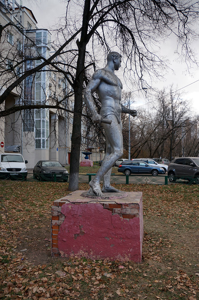 Скульптура была установлена во дворе жилого дома 13к1 по улице Маршала Василевского. К сожалению, кто создатель и когда была установлена скульптура не известно. Но по внешнему виду и по толи эстафетной палочке, толи гранате в руке памятник относится к временам бурного развития программы физкультурной подготовки ГТО.