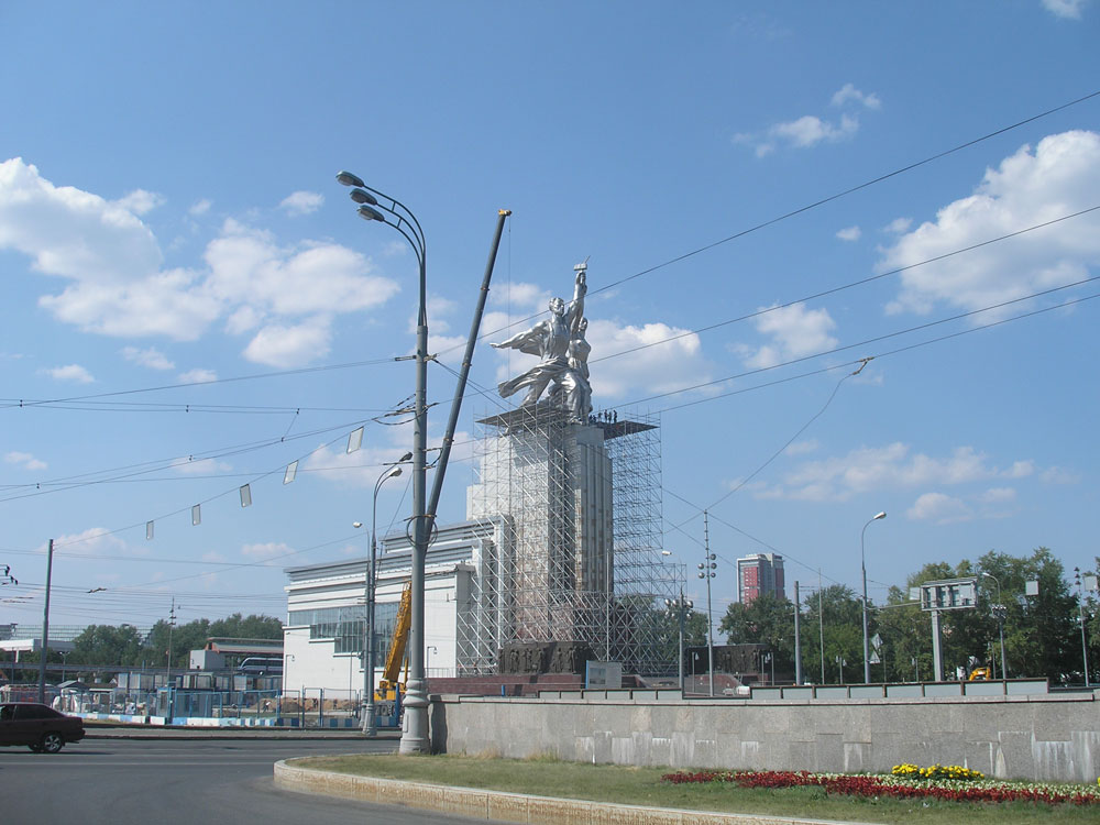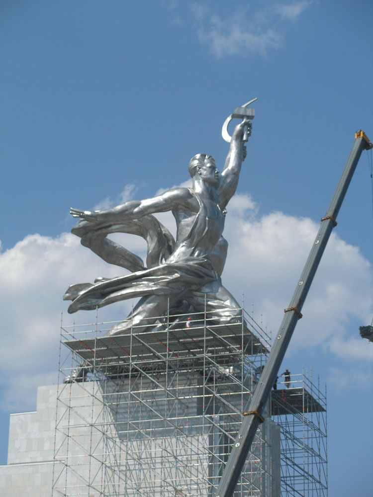 Главная » Новости и события » Памятник Рабочему и Колхознице опять в лесах